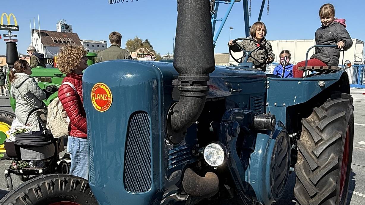 Yunis Almoty, Ella Fischer und Larissa Böhm haben sich beim Straßenfest am Frankfurter Weg in Paderborn einen Platz auf dem Traktor ergattert. | © Carola Drabon