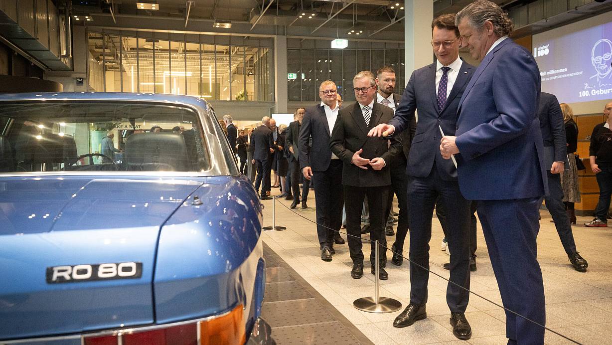 Zum 100. Geburtstag des Computerpioniers Heinz Nixdorf stattet NRW-Ministerpräsident Hendrik Wüst (2.v.r.) dem HNF in Paderborn einen Besuch ab. | © Mike-Dennis Müller