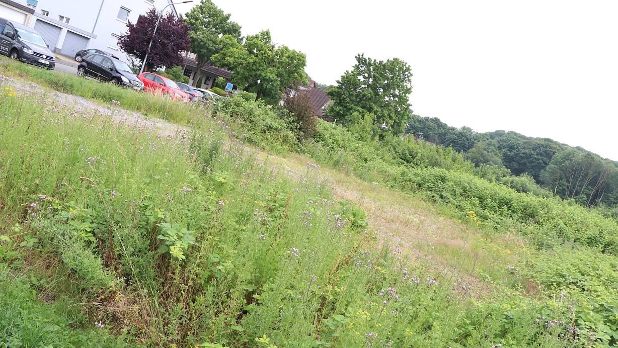 Auf dieser Fläche im Osten der Paderborner Kernstadt sollen die drei Wohngebäude entstehen. Die Brandisstraße verläuft am oberen Rand. | © Holger Kosbab