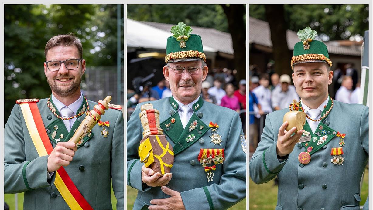 Die erste Entscheidung fiel, ohne dass sie zunächst jeder richtig mitbekam. Doch um 15.10 Uhr fehlte dem stolzen Adler im Kugelfang plötzlich der Kopf – er war fast zwei Minuten nach dem 12. und scheinbar vergebenen Schuss doch noch zu Boden gefallen. Und mit ihm natürlich die Krone, die sich somit Sergeant Klaus Eiden (62) aus der Western-Kompanie sicherte. Für den Logistik-Teamkoordinator ist es die zweite Prämie (Zepter 2023).