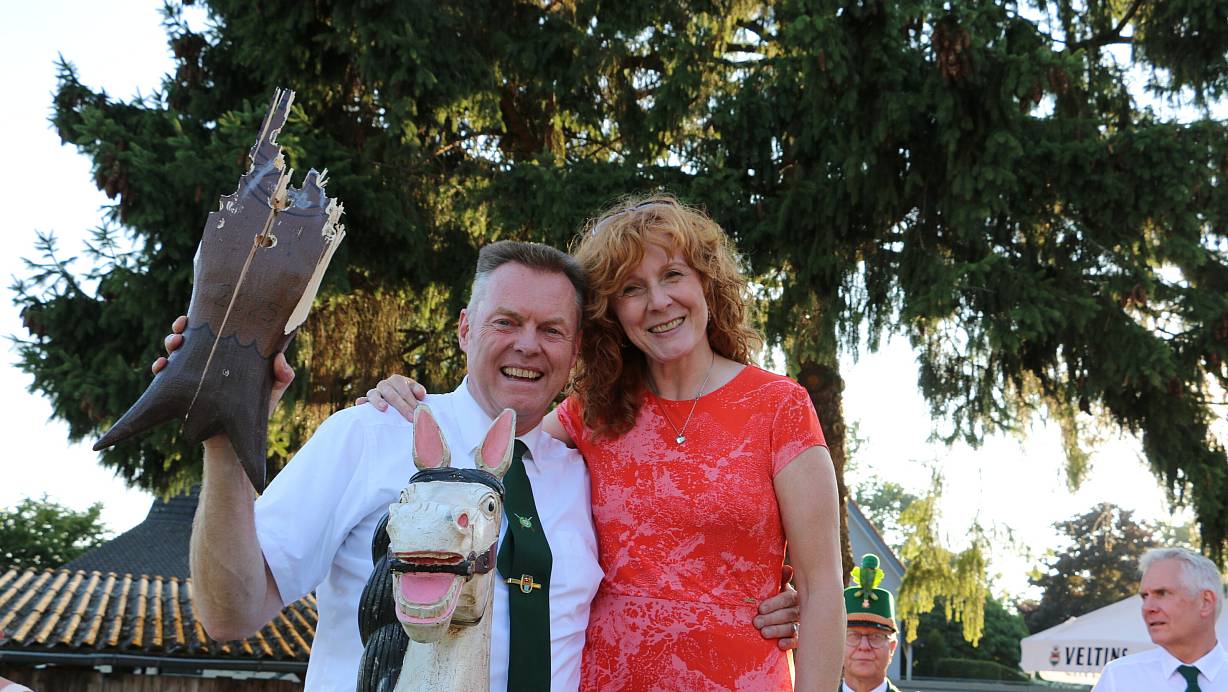 Paderborn-Sande. Beim Vogelschießen errang Reinhard Korfmacher mit dem 41. Schuss die Königswürde in Sande. Zusammen mit seiner Königin und Ehefrau Regina Korfmacher regiert Reinhard nun das Sander-Schützenvolk. Dies teilt die Schützenbruderschaft St. Hubertus Sande mit.