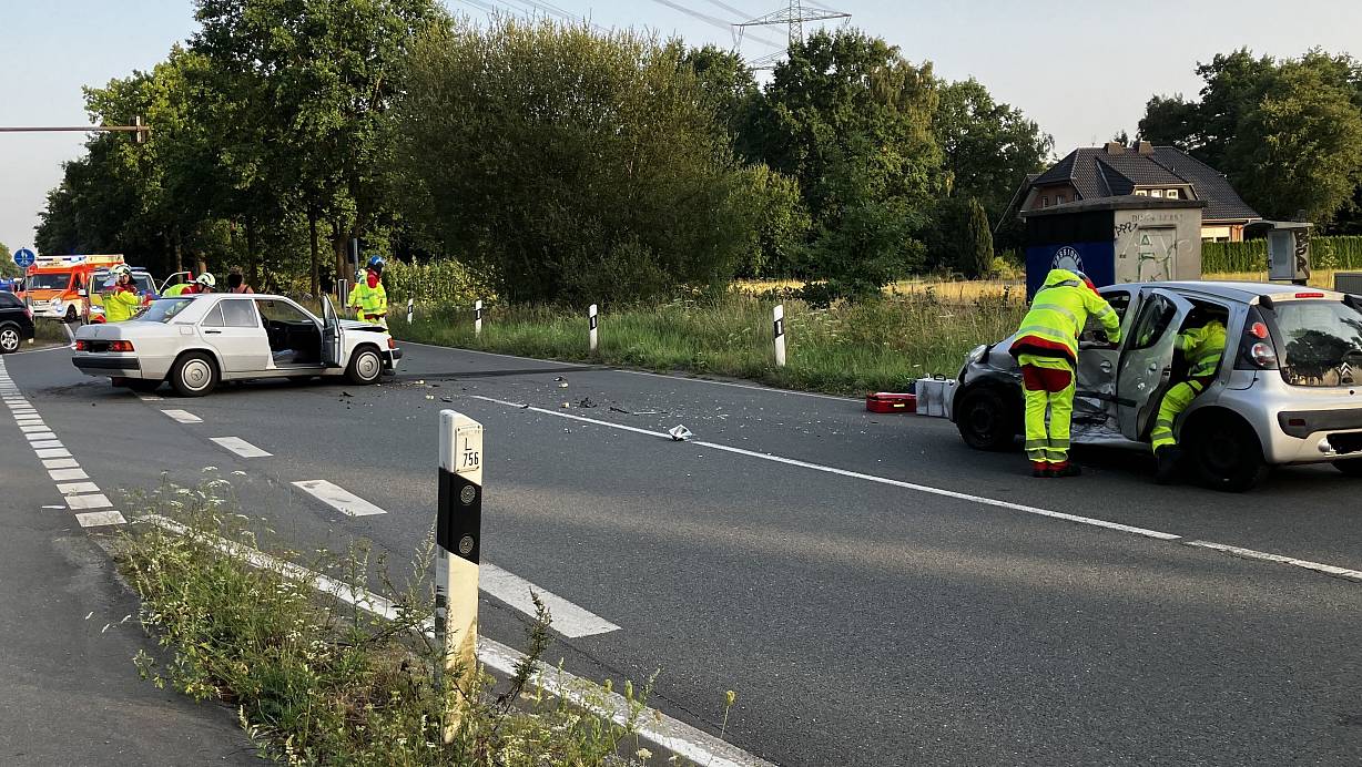 Beide Autos stießen zusammen, sodass der Citroen auf die Straße Richtung Sennelager geschleudert wurde, der Mercedes kam quer zur Bielefelder Straße im Einmündungsbereich zum Stehen.