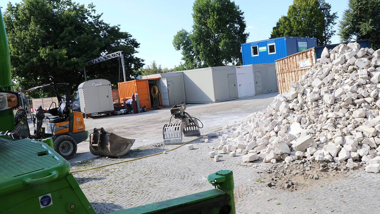 Zurzeit lagern am Abdinghofplatz Container, Baumaschinen und Schutt - in rund zwei Jahren sollen die Arbeiten an der Neugestaltung beginnen. | © Holger Kosbab