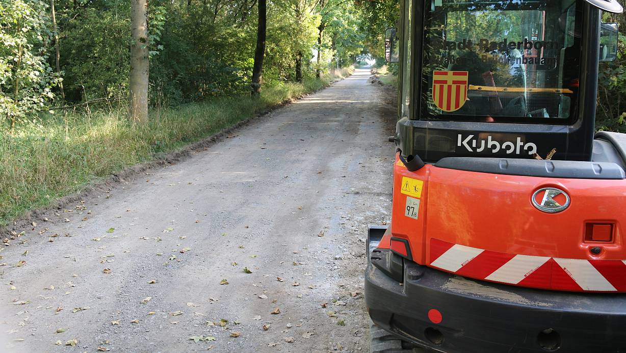 Spaziergänger, Wanderer und Radfahrende können im Naherholungsgebiet aktuell eine viel frequentierte Achse nicht nutzen. Die Allee in Richtung Borchen erhält neuen und feineren Schotter. Zur Freude von Radpendlern.