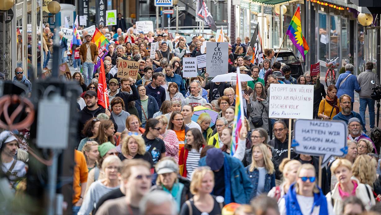 Am Paderborner Westerntor treffen die AfD-Sympathisanten und die Teilnehmenden der Gegendemo aufeinander. Es wird laut.
