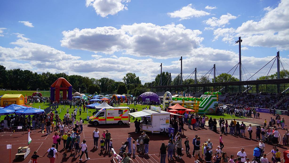In diesem Jahr war wegen des strahlenden Sonnenscheins das Grün des Ahorn-Sportparks wieder voll mit Besuchern. Mehr als 70 Vereine präsentierten ihr Angebot für Kinder und Jugendliche.