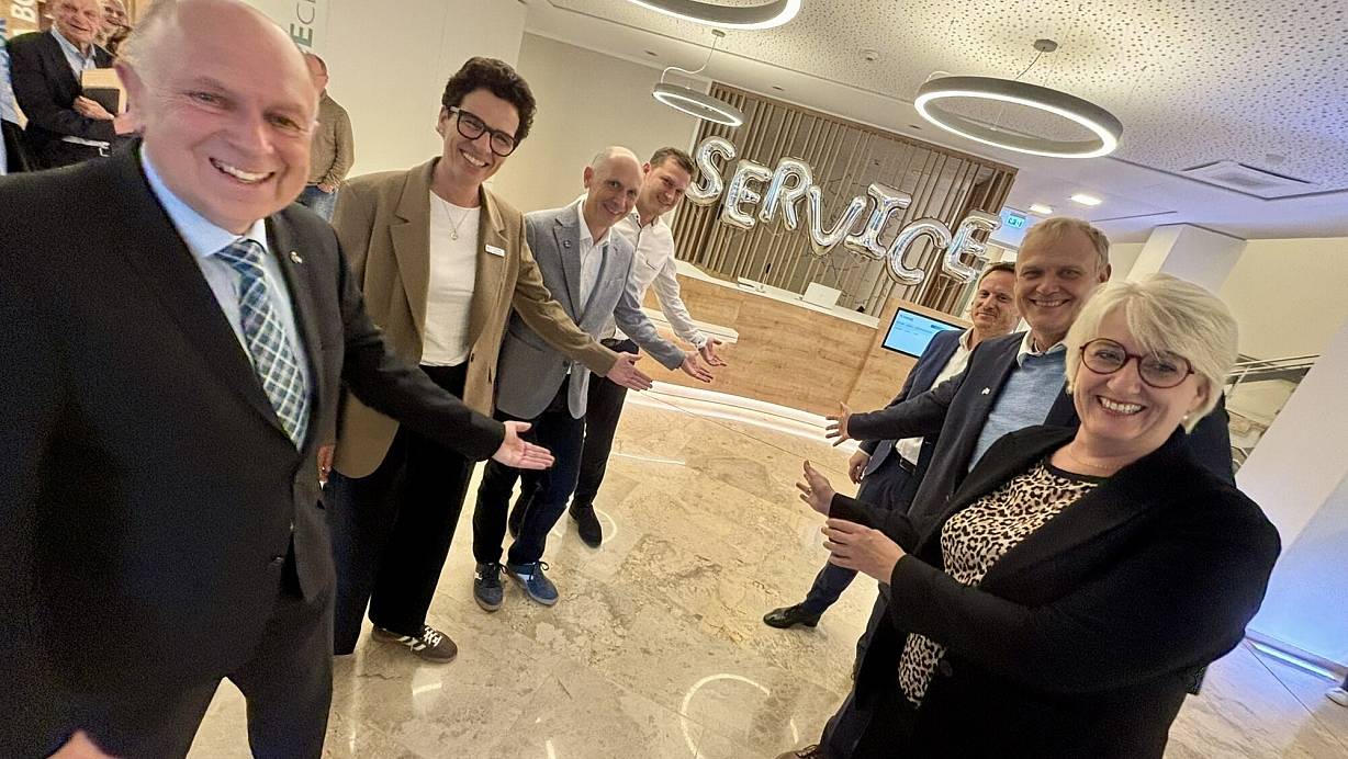 Kreis Paderborn. Wer im Paderborner Kreishaus an der Aldegreverstraße etwas erledigen muss, soll nun schneller zum Ziel kommen. Das verspricht die Kreisverwaltung mit ihrem neuen Servicecenter, das anstelle des Empfangs neu errichtet worden ist. Landrat Christoph Rüther hat den zentralen Anlaufpunkt im Foyer des Hauses nun im Beisein von Verwaltungsspitze und Kreistagsmitgliedern offiziell freigegeben.