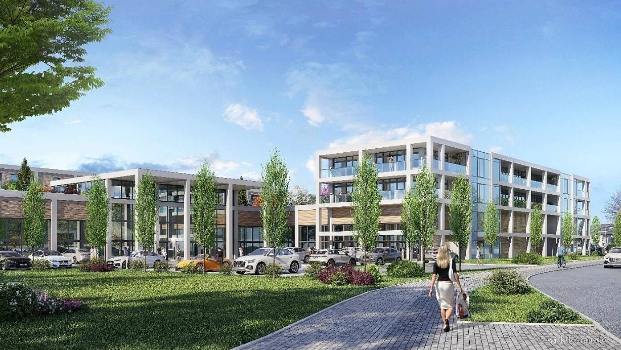 Nach den Vorstellungen der Investoren könnte das neue Nahversorgungszentrum in der Paderborner Stadtheide so aussehen. | © Visualisierung: Schwabenweg Projekt eGbR