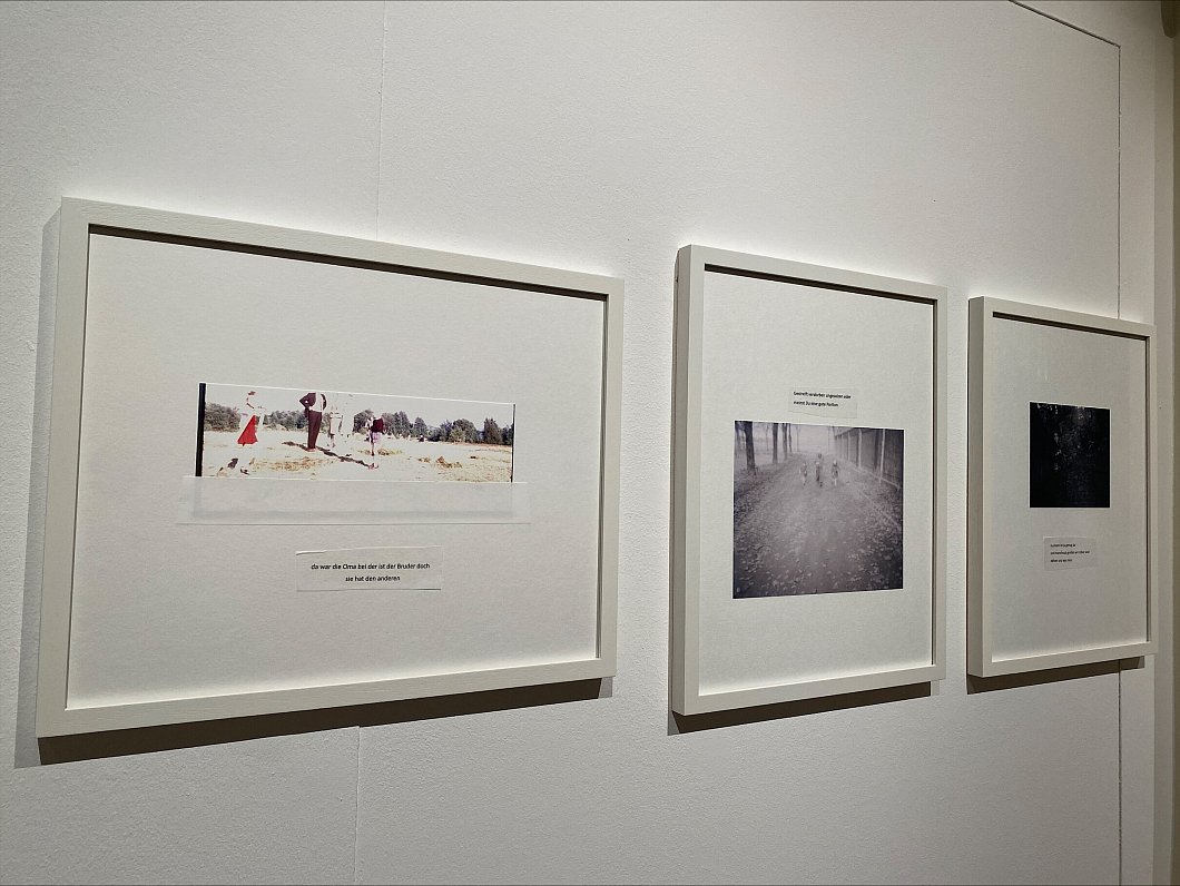 Ein Teil der Kunst beschäftigt sich mit dem Vergessen, genauer mit der Krankheit Demenz. So sind unter anderem Werke von Dagmar Boenigk zu sehen: Wortfetzen von erkrankten Menschen im Zusammenspiel mit verblassten Familienschnappschüssen. Und auch ein restauriertes Gemälde, überklebt mit japanischen Papier soll demonstrieren, wie es im Zustand der Demenz sein kann. „Das Gemälde wird erst beim genauen Hinschauen präsent und auch dann weiß man nicht so richtig, was man sieht“, so Ruhmann.