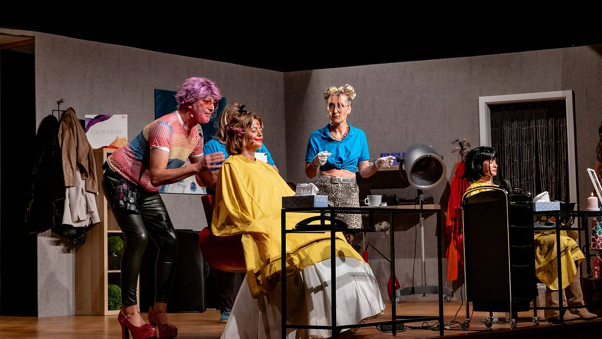 Die Theatergruppe „Wir sind Theater” spielt eine turbulente Komödie und verwandelt die Bühne in einen Salon. Beim Publikum kommt das bestens an.