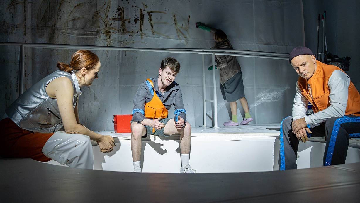 Alles in dieser Inszenierung ist mehrschichtig, Sprache, Spiel und Bühnenbild sind mal konkret, meist abstrakt und trefflich metaphorisch-bildhaft. Da sind seltsam-philosophische Gespräche über existenzielle Sorgen und das Fehlen eines Bodens, der einen auffängt. Das ganze Leben wird dominiert von der Angst vorm gesellschaftlichen Absturz.