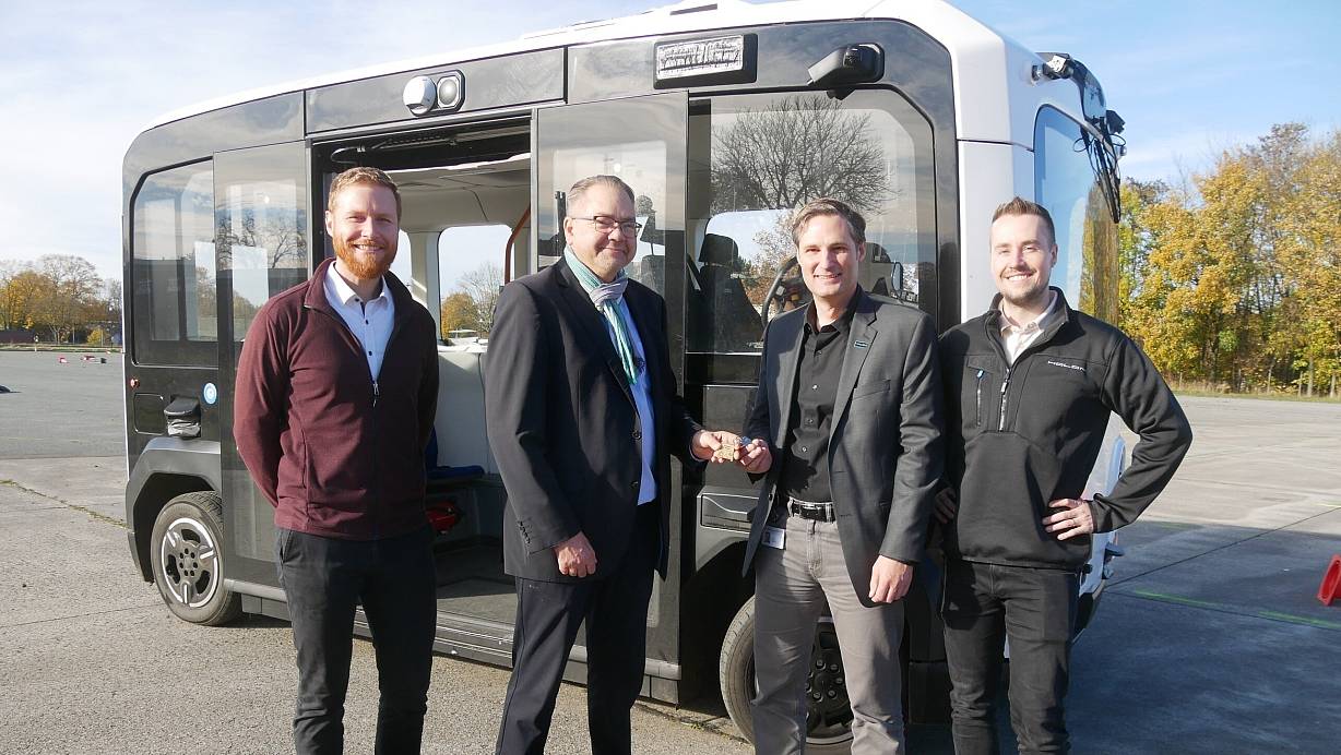 Erfolgreiche Präsentation: Autonomes Shuttle flitzt am Flughafen Paderborn ohne Fahrer