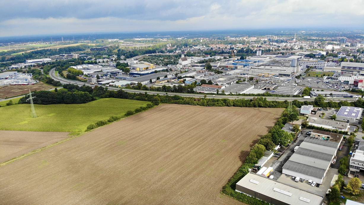 Der Campus für Brandschutz, Rettungsdienst und Katastrophenschutz von Kreis und Stadt Paderborn soll auf der freien Fläche (Wiese und Acker) an der Barkhauser Straße in Paderborn entstehen. Oberhalb angrenzend verläuft die B64. | © Jens Reddeker