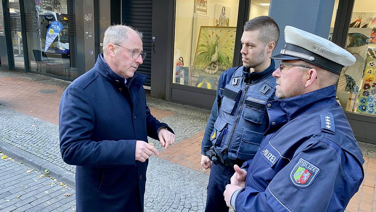Paderborn. Spätestens nach der Gewalttat in der Paderborner Marienstraße mit Todesfolge spielt das Thema Sicherheit in der Innenstadt eine große Rolle für viele Bürgerinnen und Bürger. Wie die Lage im Bereich Marienstraße, Westernmauer und Brückengasse ist, hat sich der neue Bürgermeister Stefan-Oliver Strate bei einem Rundgang mit Kräften der Boss-Wache (Büro für Ordnung, Schutz und Sicherheit) und der Kreispolizei angeschaut.
