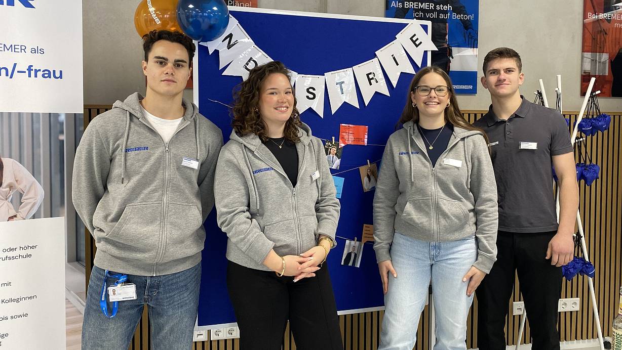 Die Industriekaufleute-Auszubildenden Radolf Weber (zweites Lehrjahr/v. l.), Ina Remmert (drittes Lehrjahr), Emma Roggel (zweites Lehrjahr) und Samuel Kasper (drittes Lehrjahr) beim Tag der Ausbildung. | © Julia Spiekerkötter