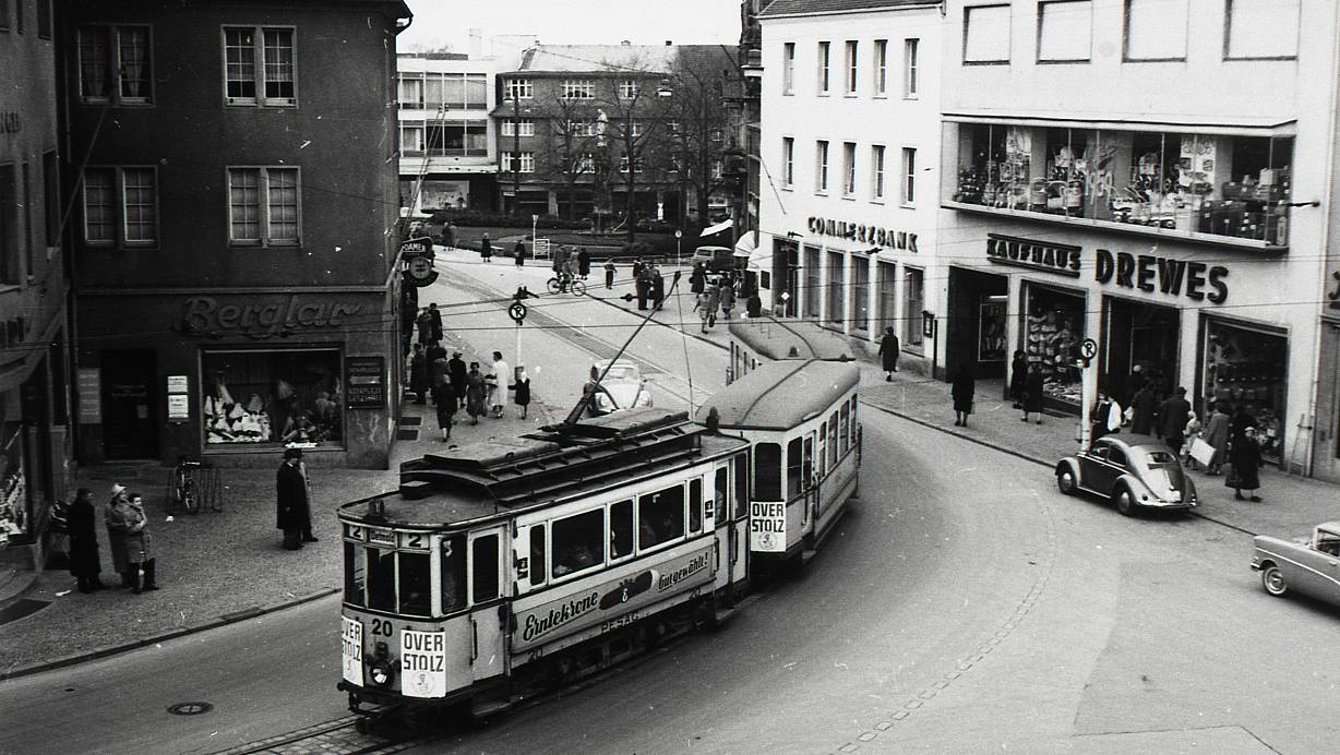 Die Straßenbahn gehörte ein paar Jahrzehnte - wie hier in den 1950er-Jahren - zum Straßenbild Paderborns. | © Stadt- und Kreisarchiv Paderborn