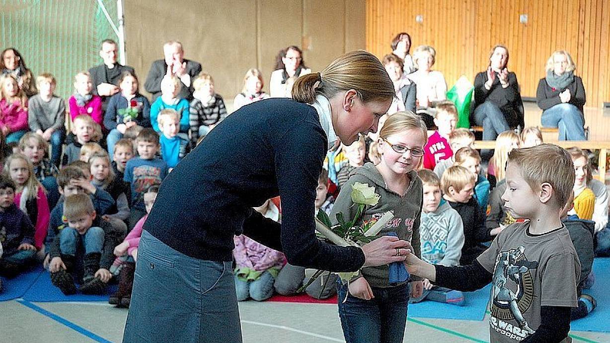 In einer Erzählrunde im Vorfeld hatten Kinder der Moderatorin dieser Feier die Aufgaben einer Schulleitung beschrieben. An die Beliebtheitsspitze katapultierte sich das Anführen der Polonaise bei der bevorstehenden Karnevalsfeier - wie es Pasel gepflegt hatte. Es folgten "viel telefonieren", Reden halten und "die Feuerwehr rufen, wenn es brennt". Nacheinander traten Sprecher der einzelnen Klassen vor Waßmuth, überreichten eine Papierrolle sowie eine Rose und äußerten handfeste (Glück-)Wünsche. Einer lautete aus Jungen-Mund: "Wir wollen, dass Du unser Boss wirst."