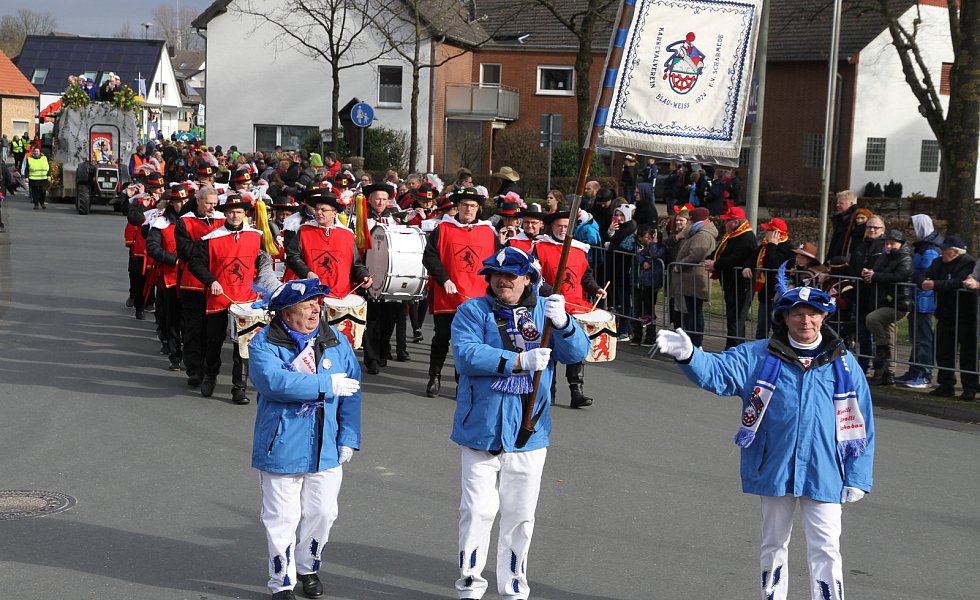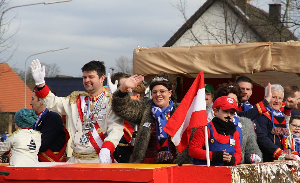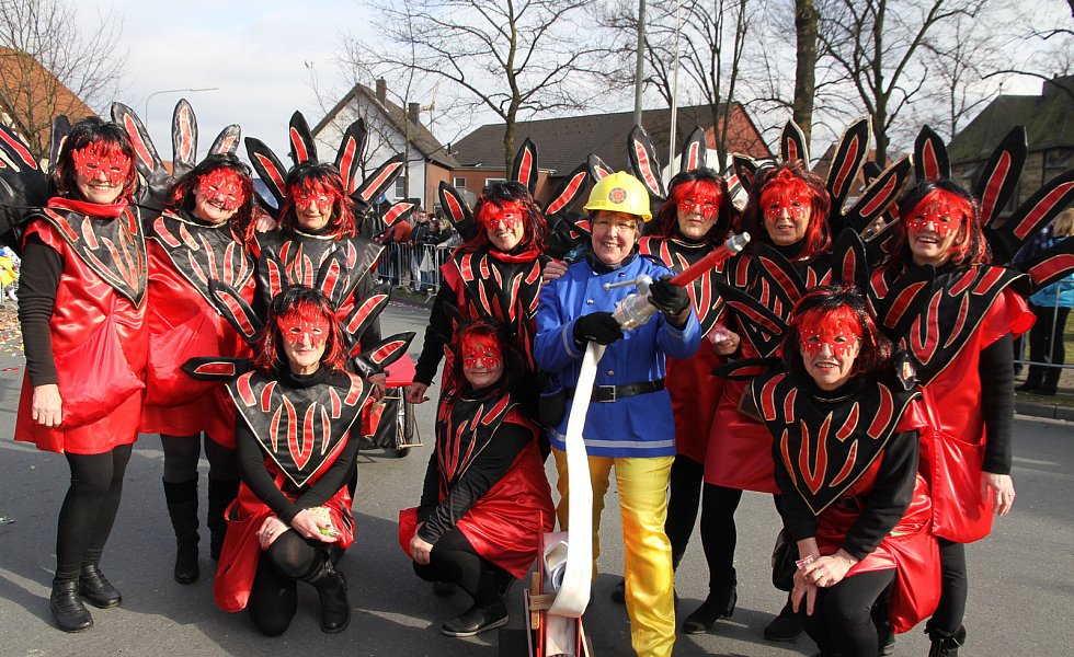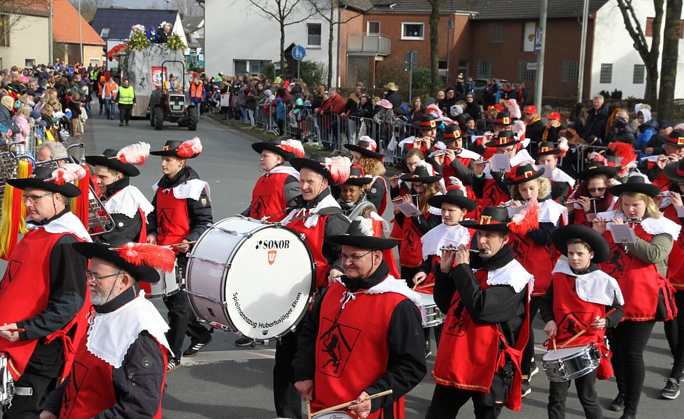 Musikalisch angeführt von den Hubertusjägern aus Elsen, insgesamt gab es fünf Musikgruppen, hatten sich um 14.01 Uhr 53 Zugnummern, darunter 38 Festwagen, bei bestem Wetter und Temperaturen um zehn Grad auf den Weg gemacht. Startplatz war erstmals am Netto-Markt. Über eine Stunde lang zog das Narrenvolk durch Straßen, um dann, gemeinsam mit den vielen Zaungästen, die Feierlichkeiten in der Schützenhalle beim anschließenden großen Karnevalsball fortzusetzen.