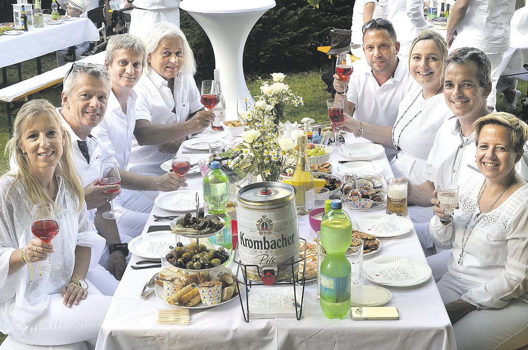 Salzkotten. Aller guten Dinge sind zwei. Zumindest, wenn es um das "Dinner in Weiß" geht. Das Großevent benötigte in diesem Jahr in Salzkotten zwei Anläufe, um über die Bühne gehen zu können. Nachdem der ursprüngliche Termin (1. Juni) wegen unbeständigen Wetters abgesagt wurde, war am Freitag alles eitel Sonnenschein. Zudem blieb es den Abend über trocken, so dass Sälzer und Gäste zum sechsten Mal den Picknickkorb auspacken durfte. Diesmal wurde rund um die Dreckburg üppig gegessen und getrunken.