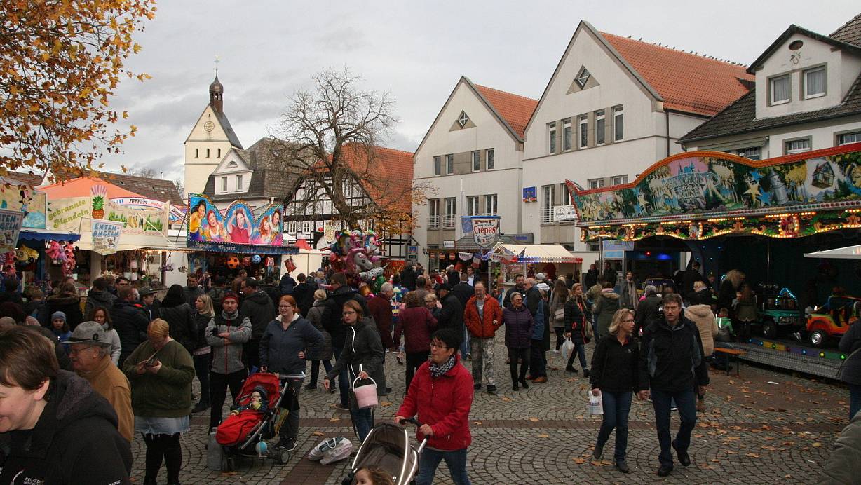 Mit jeder Stunde wurde die Innenstadt voller, egal ob bei der Kirmesmeile, im Hüttendorf oder entlang der Geschäfte. Die milden Temperaturen hatten viele Menschen nach draußen gelockt. So auch André Grimm aus Ostenland mit seiner Frau und den beiden Kindern Luis und Emely. „Der Martini-Besuch ist bei uns Tradition. Ich treffe hier Kollegen und Bekannte", sagt Grimm.