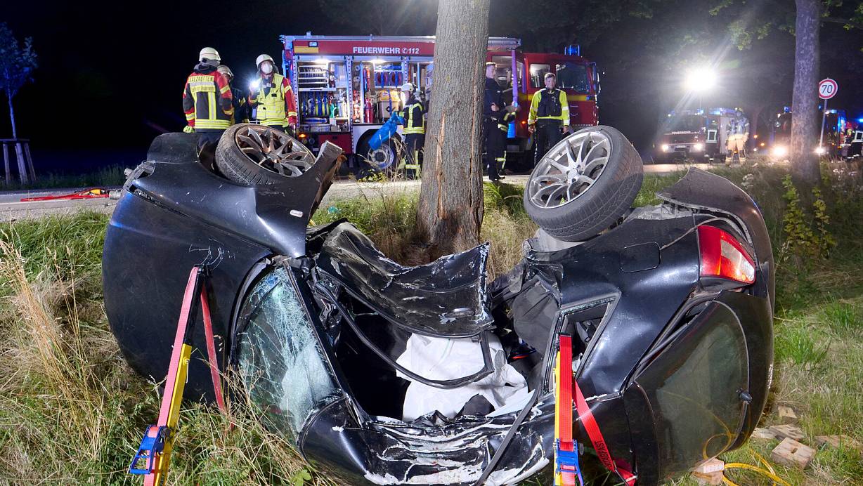 Der Audi kam nach ersten Erkenntnissen der Polizei auf der Fahrt in Richtung Verne offenbar mit hoher Geschwindigkeit in einer leichten Rechtskurve von der Fahrbahn ab und prallte gegen einen Baum.