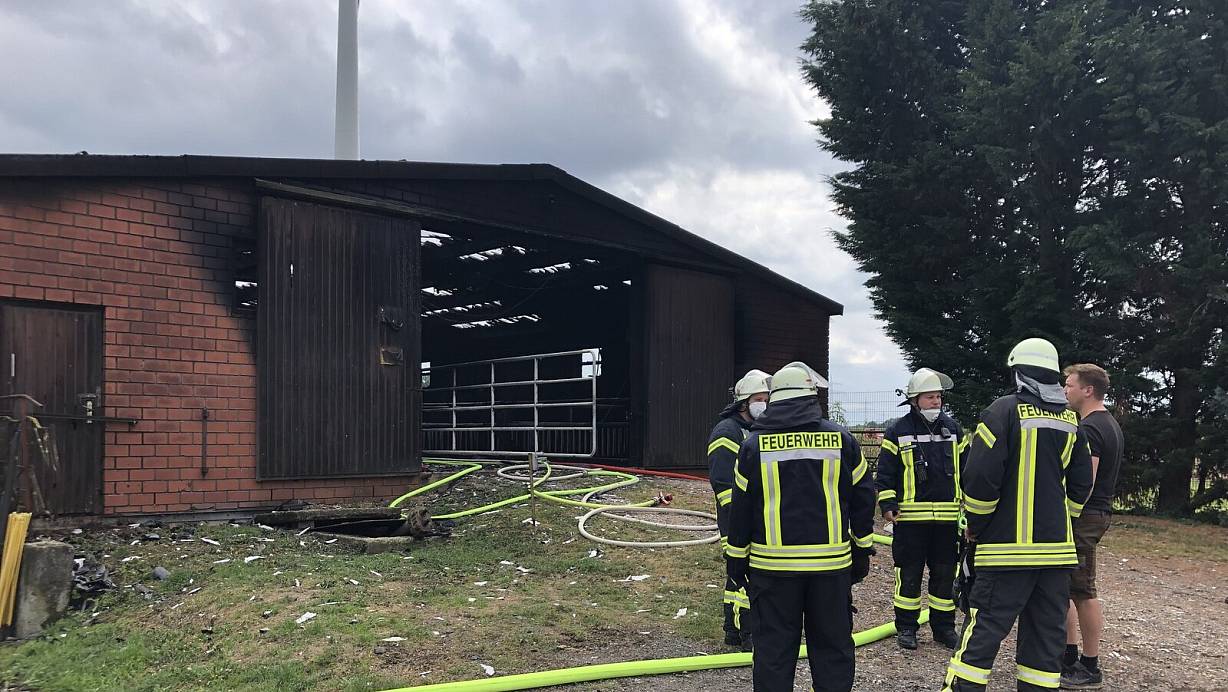 Die Feuerwehr löschte das brennende Dach des großen Stalls zwischen Salzkotten und Paderborn. | © Reinhard Peters