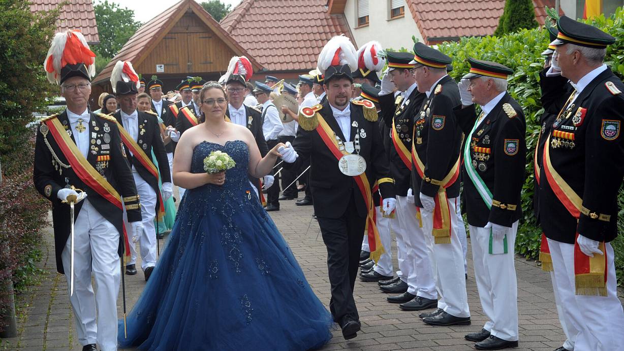 Höhepunkt war der große Festumzug durch die Gemeinde, bei dem vor allem Königin Meike in ihrem königinnenblauen, mit Spitze und Pailletten besetzen Tüllkleid besonderen Beifall erntete. Die Hofdamen folgten ihr in türkisfarbenen Chiffonkleidern, die ebenfalls mit Spitze besetzt waren.