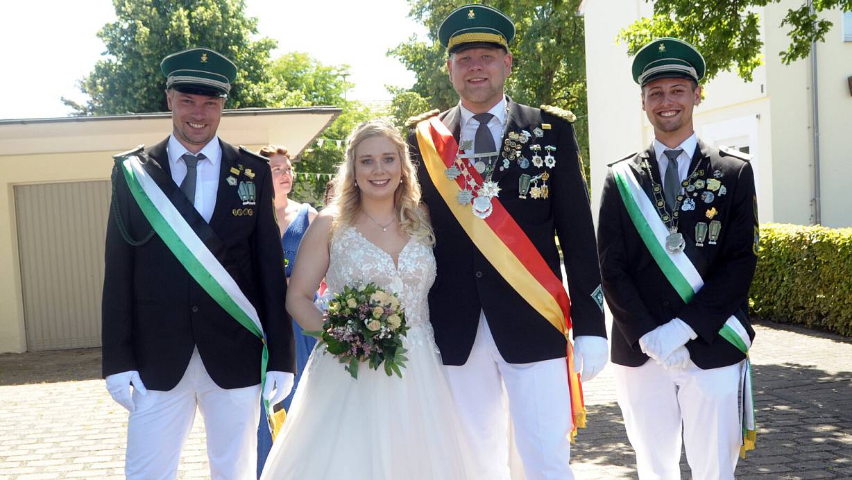 Das neue Königspaar Jens Baumhoer und Carina Bodendorf zieht bei bestem Schützenwetter durch die Gemeinde.