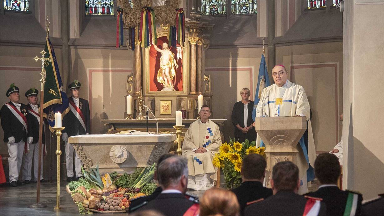 Salzkotten-Verne. Mit einer Friedenswallfahrt, einem festlichen Pontifikalamt mit Weihbischof Dominicus Meier in der Pfarr- und Wallfahrtskirche St. Bartholomäus in Verne sowie der rituellen Schließung der Jubiläumspforte der Pfarrkirche durch den Weihbischof ist das Jubiläumsjahr „850 Jahre Wallfahrt in Verne“ zu Ende gegangen. Zahlreiche Wallfahrer nahmen laut Erzbistum am Pontifikalamt teil, das der Weihbischof in Vertretung des erkrankten Erzbischofs Hans-Josef Becker feierte. Der frisch emeritierte Erzbischof hatte am 1. Mai das Jubiläumsjahr Verne eröffnet.
