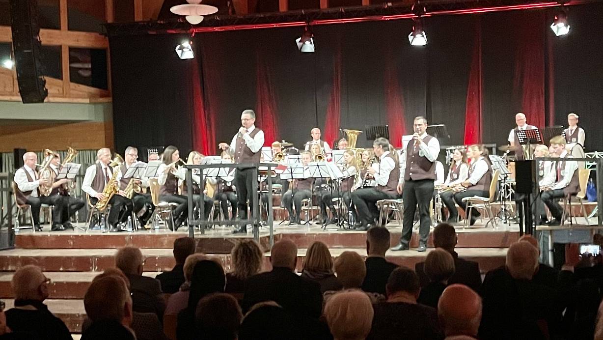 Beim Neujahrskonzert in der Sälzerhalle zeigen Musikvereine ihr großes Repertoire. Der Bürgermeister präsentiert Zahlen einer positiven Stadtentwicklung.