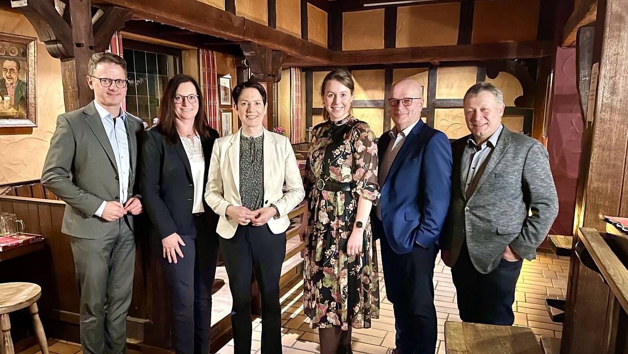 Beim siebten Zukunftsforum Landwirtschaft waren (v. l.) Bundestagsabgeordneter Carsten Linnemann, Kreislandwirtin Susanne Mönnikes, NRW-Landwirtschaftsministerin Silke Gorißen, CDU-Kreisvorsitzende Corinna Rotte, Westfalens Bauernpräsident Hubertus Beringmeier und der stellvertretende Kreislandwirt Eduard Gockel dabei. | © Carola Drabon