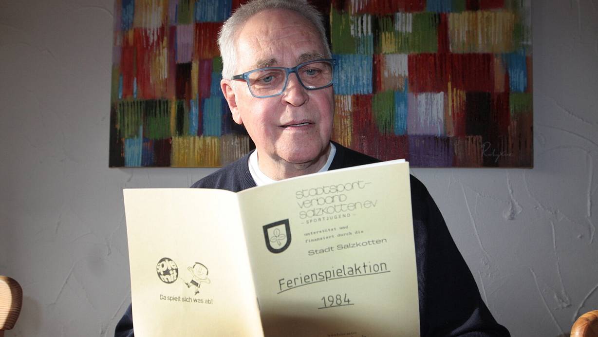 Hans-Peter Tennagel war vor 39 Jahren Initiator der Ferienspiele im Salzkottener Stadtgebiet. Dieses Jahr finden sie zum 40. Mal statt. Er hält noch ein Original-Programmheft von 1984 in den Händen. | © Uwe Müller