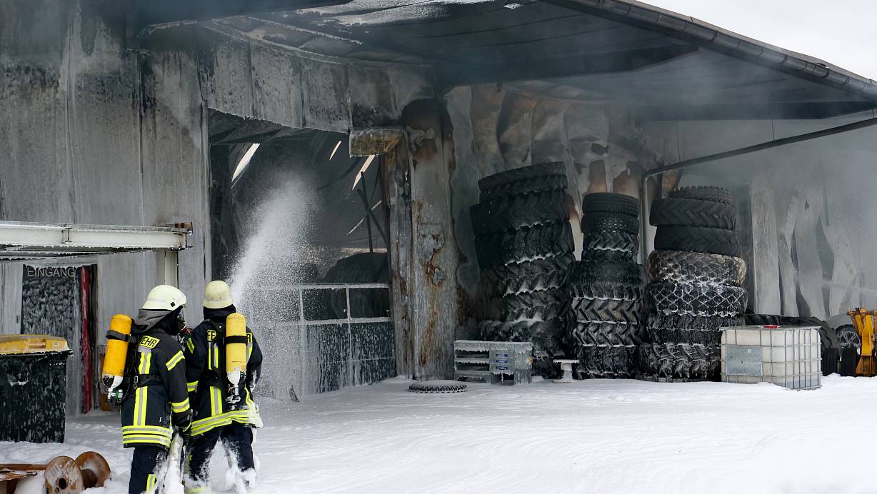 Die riesige Rauchwolke zieht bis Paderborn. Das Krankenhaus muss zeitweilig seine Operationssäle schließen. Die Halle ist ein Totalverlust, ebenso die zahlreichen eingelagerten Winterreifen.