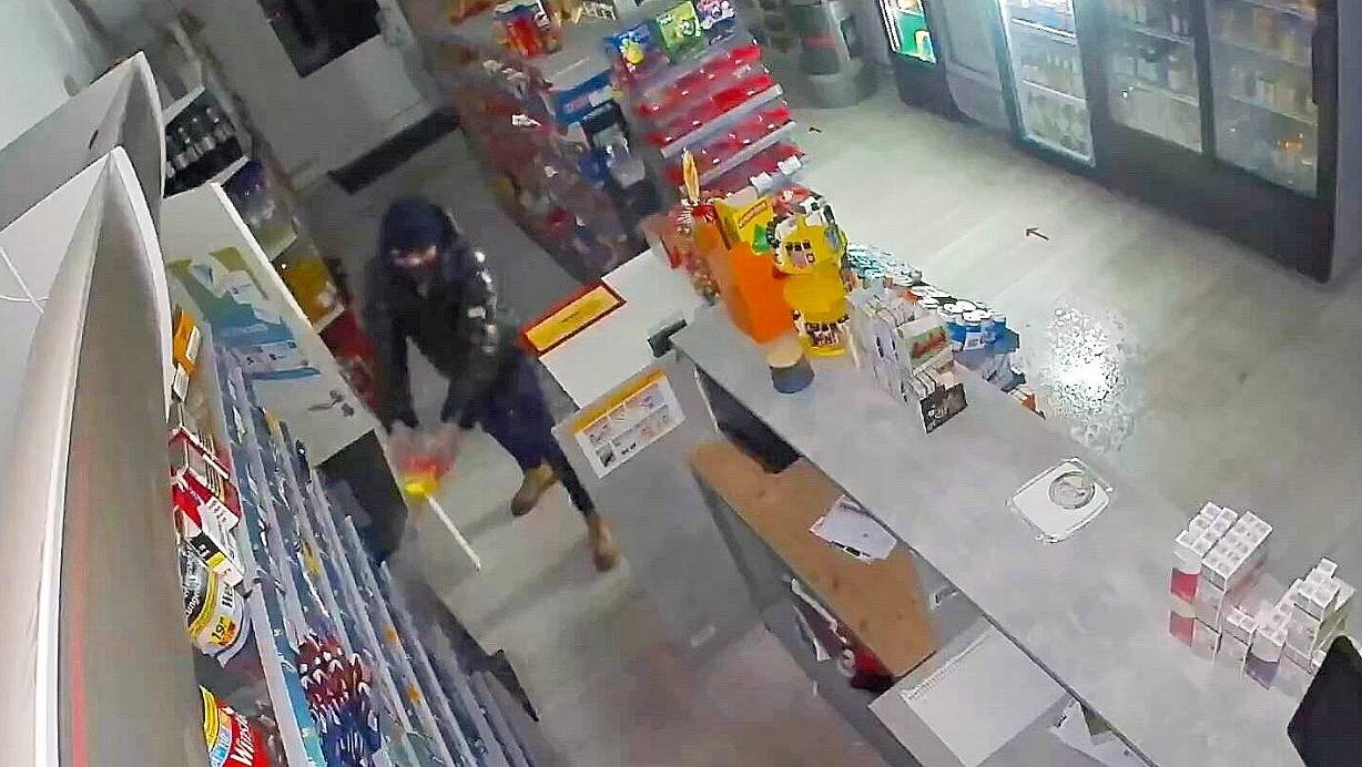 Auf dem Überwachungsvideo ist zu sehen, wie ein vermummter Mann eine Flüßigkeit - vermutlich Brandbeschleuniger - verspritzt. | © Polizei/Screenshot