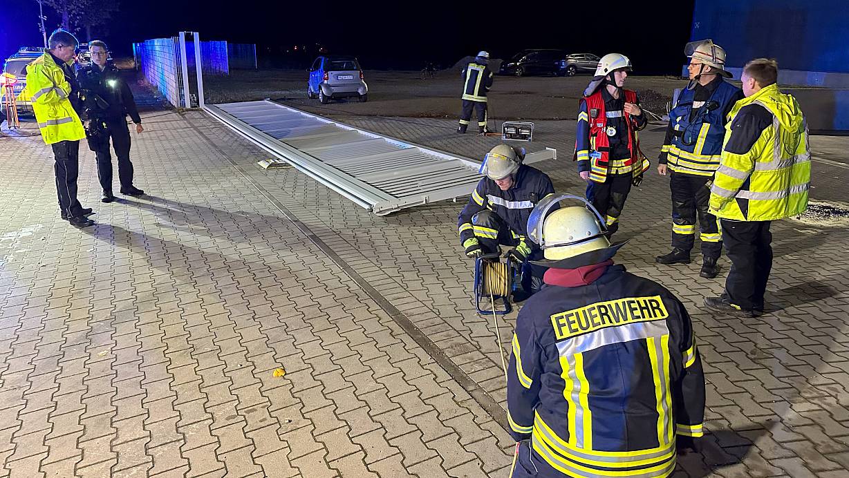 Bei einem Arbeitsunfall im Gewerbegebiet Franz-Kleine-Straße ist in der Nacht zu Dienstag eine Mitarbeiterin eines Dämmstoffherstellers unter einem etwa zehn Meter langen, umstürzenden Schiebetor eingeklemmt und schwer verletzt worden. | © Ralph Meyer