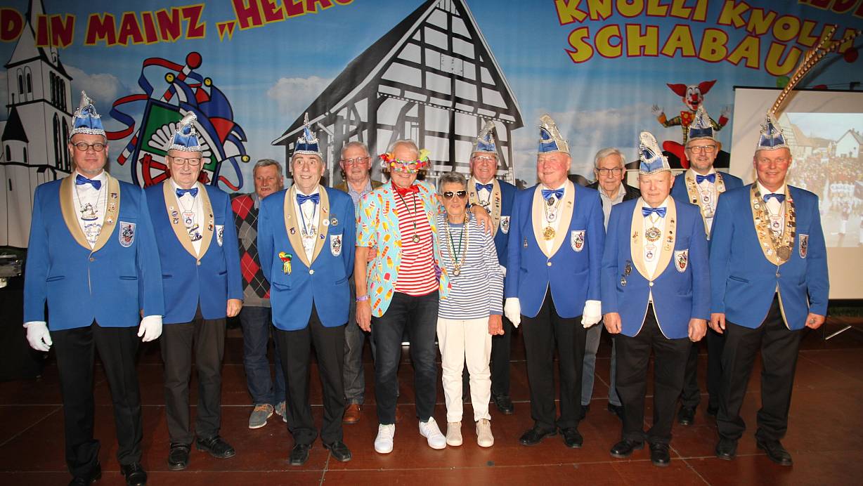 Einige der noch elf lebenden Gründungsmitglieder posieren mit dem ersten Prinzenpaar des Scharmeder Karnevals, Inge und Gerd Wiehmeier. | © Johannes Büttner