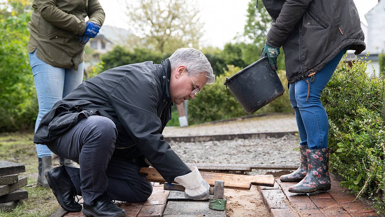 In Salzkotten wird Udo Markus Bentz zum Steineleger. Die 72-Stunden-Projekte des BDKJ trotzen im Kreisgebiet dem Wetter.