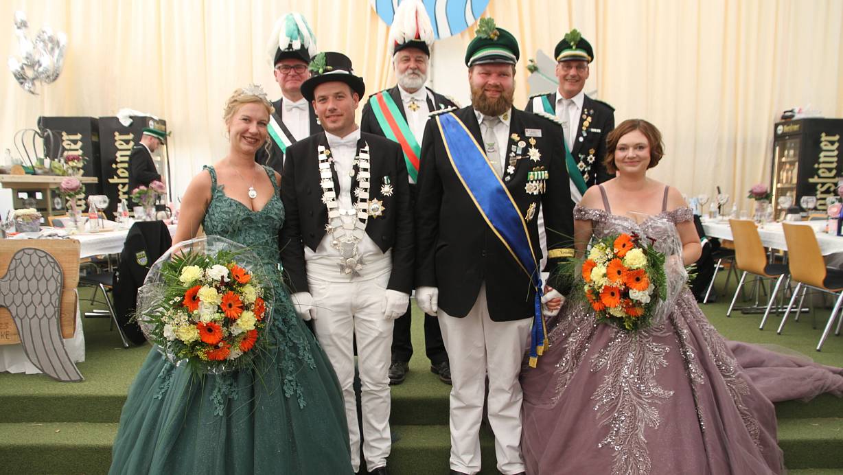 Steffen Löper und Nora Rosensträter aus Büren (l.) lösen Niklas und Janine Fecke aus Upsprunge als Kreiskönigspaar ab. | © Johannes Büttner