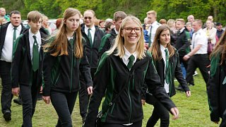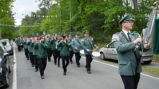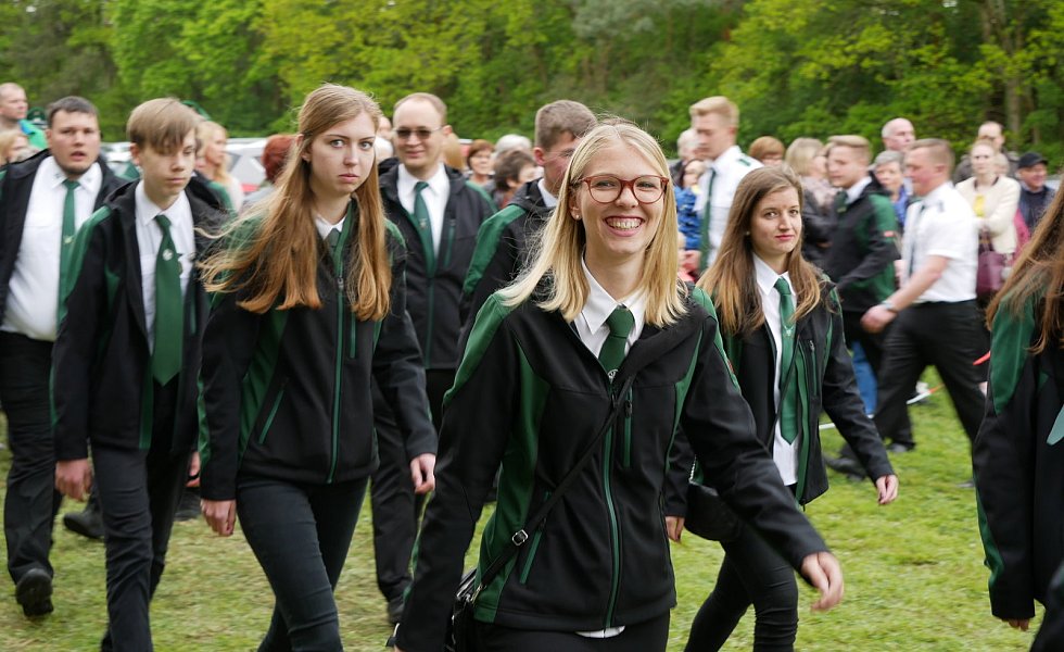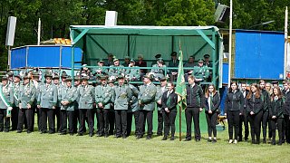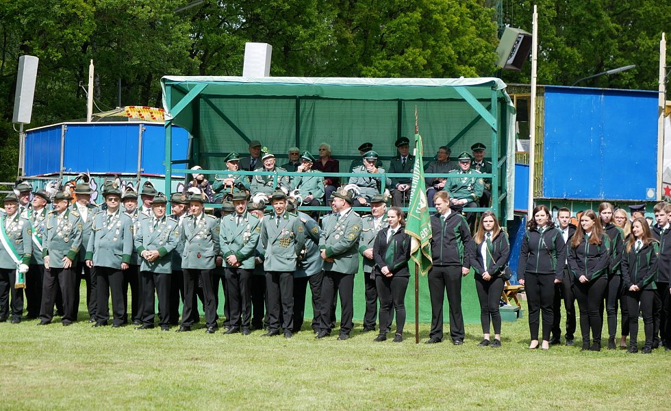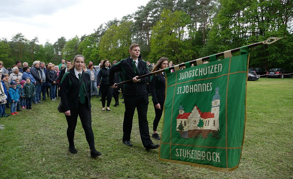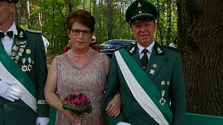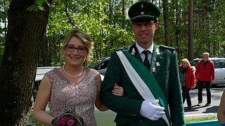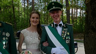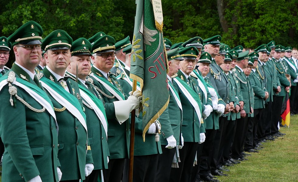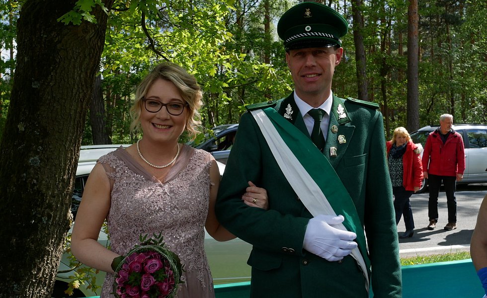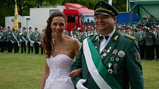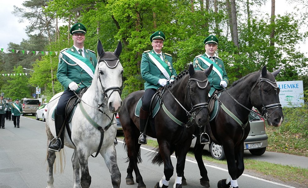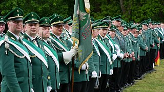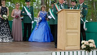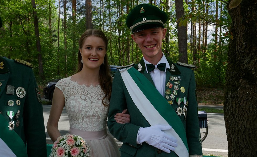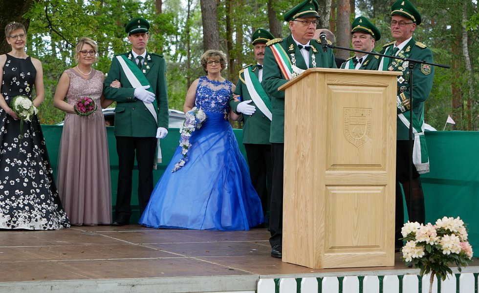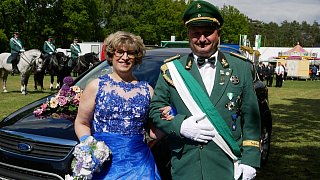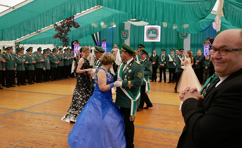Der neue Hofstaat: Brudermeister Frank Hachmann (vordere Reihe, v. l.), Ehrenpaar Christian und Silvia Knocke, Königspaar Hermann-Josef und Hildegard Brummelte, Ehrenpaar Annegret Schapöhler und Dieter Lüke, Ex-Königspaar Gabi und Sven Teßmann sowie Präses Karl-Josef Auris. Kronprinzenpaar Jana Berg und Robin Schniedermann (2. Reihe, v. l.), Zepterprinzenpaar Annika Prigge und Andreas Hachmann. Apfelprinzenpaar Michelle Dreier und Marcel Mielemeier (hintere Reihe).