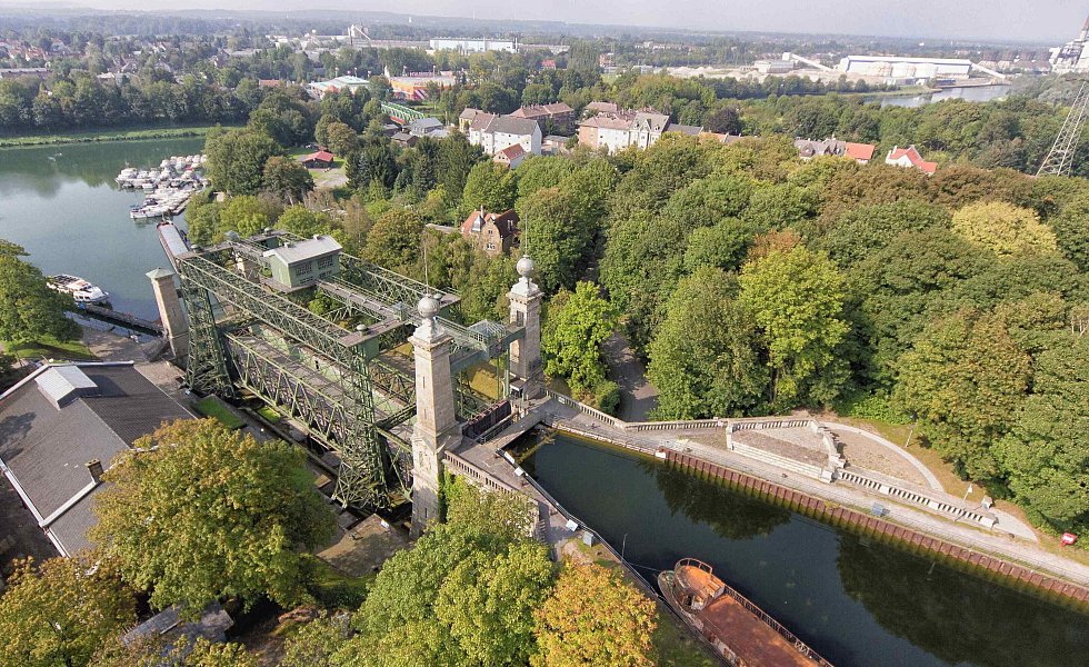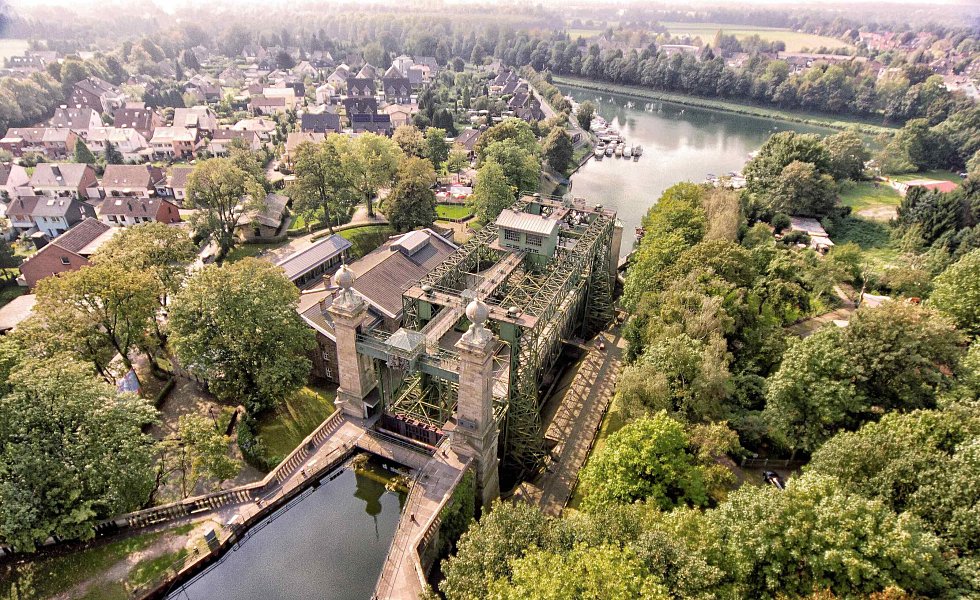 Das Schiffhebewerk war damals ein wichtiger Knotenpunkt für Schiffe im Ruhrgebiet und verband den Dortmund-Ems-Kanal mit dem Rhein.