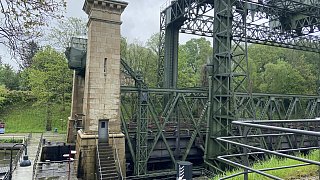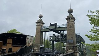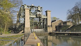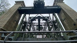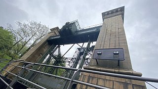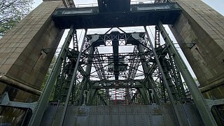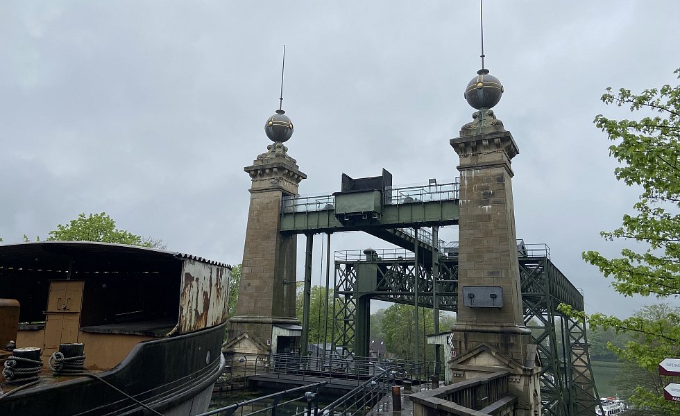Das Stahlgerüst befördert die Schiffe nach oben oder nach unten. Die Stein-Architektur hat dient als Verkleidung der Hebetechnik.