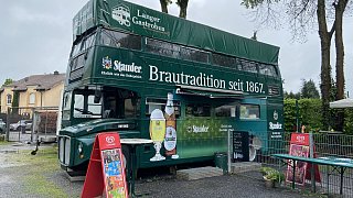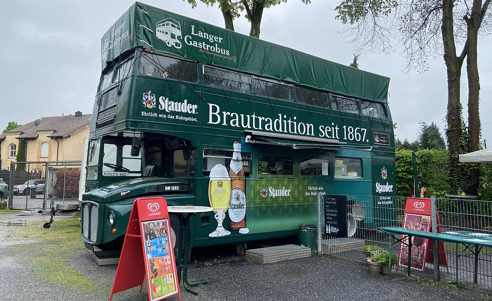 In dem Gastro-Bus können die Gäste kleine Speisen wie Bratwurst oder Kuchen und warme sowie kalte Getränke bestellen.