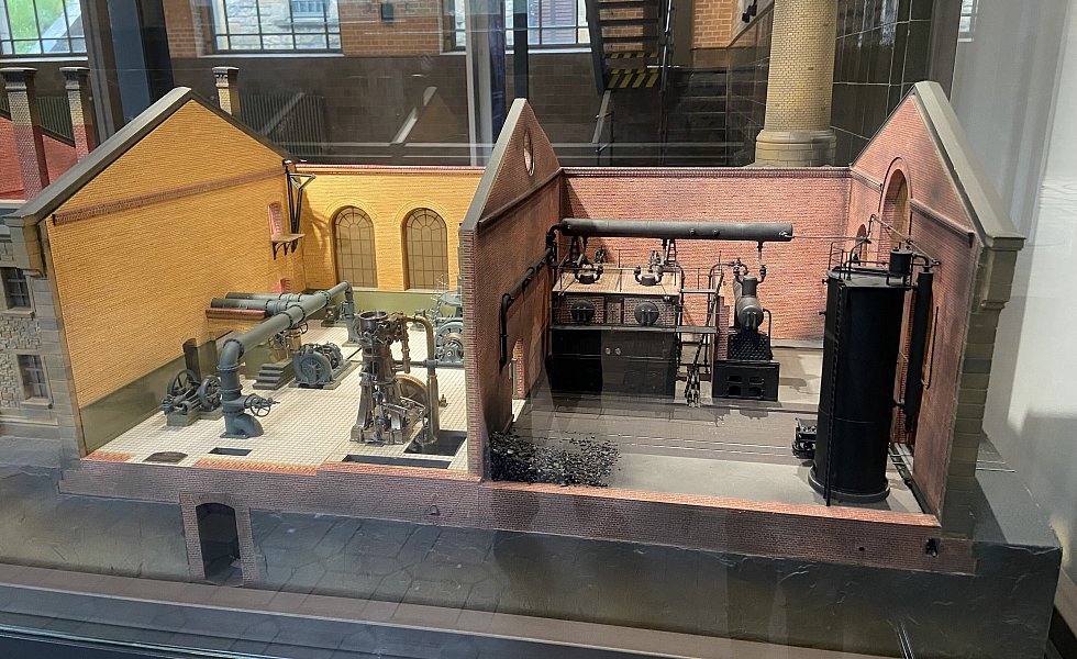 In dem direkt anliegenden Gebäude würde der Strom für die elektrischen Pumpen hergestellt. Das war nötig, weil es in den Anfängen des Hebewerks noch kein Stromnetz gab.