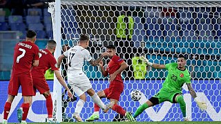 Ein Eigentor von Merih Demiral (l) leitete die türkische Niederlage in Rom ein.