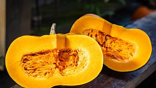 Die Zubereitung der bizarr gemusterten Bischofsmütze hat aufgrund des harten Fruchtfleisches selbst Simone Krüger Probleme gemacht.