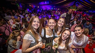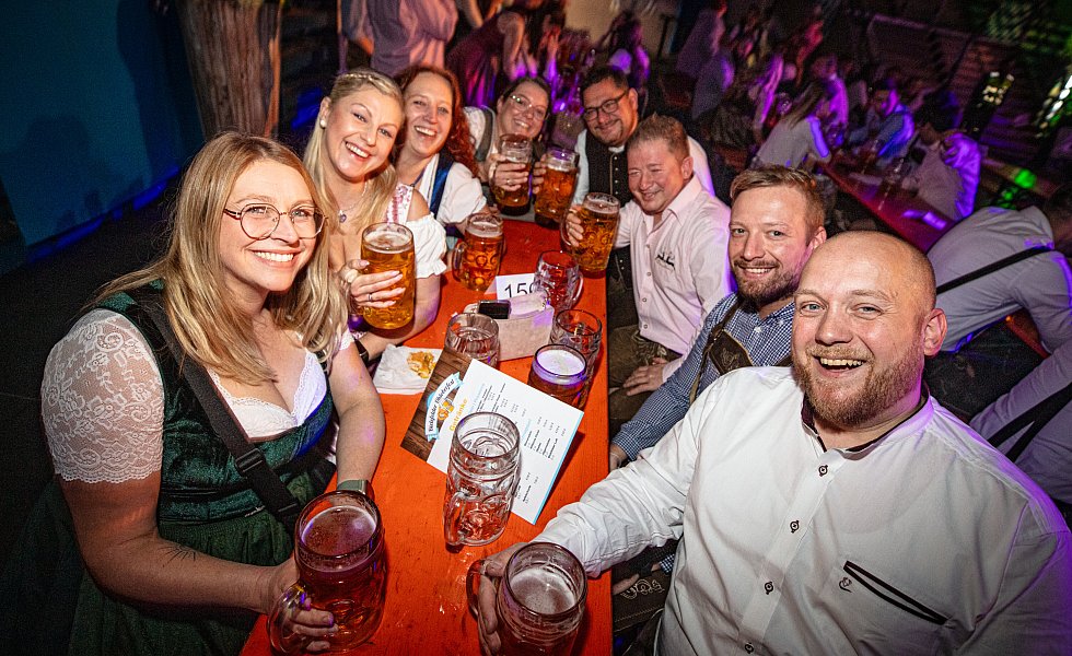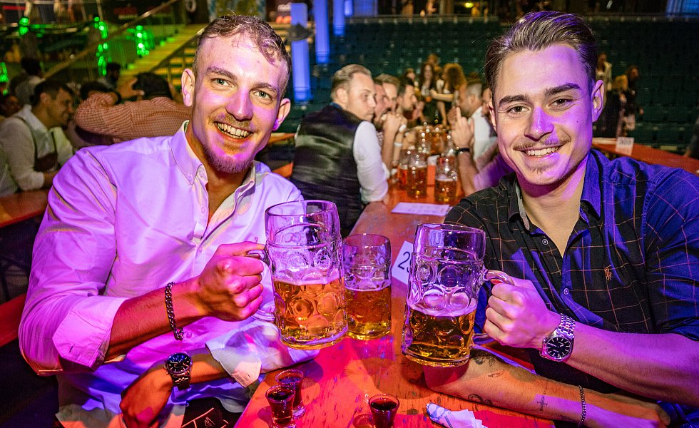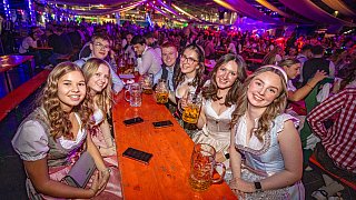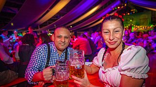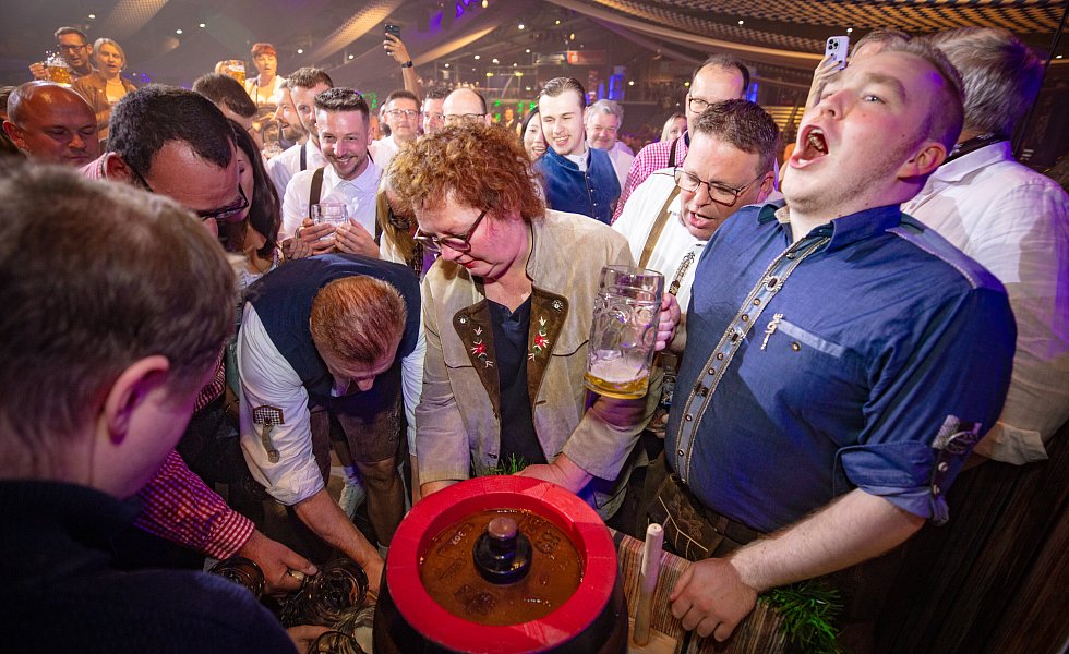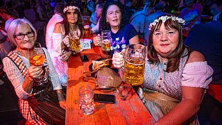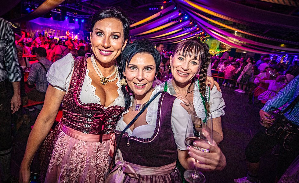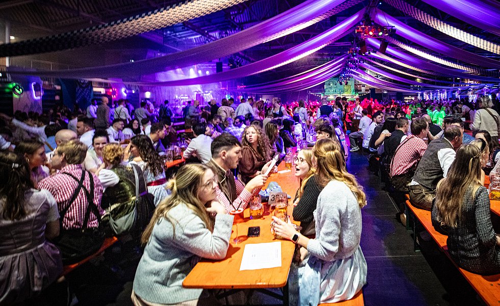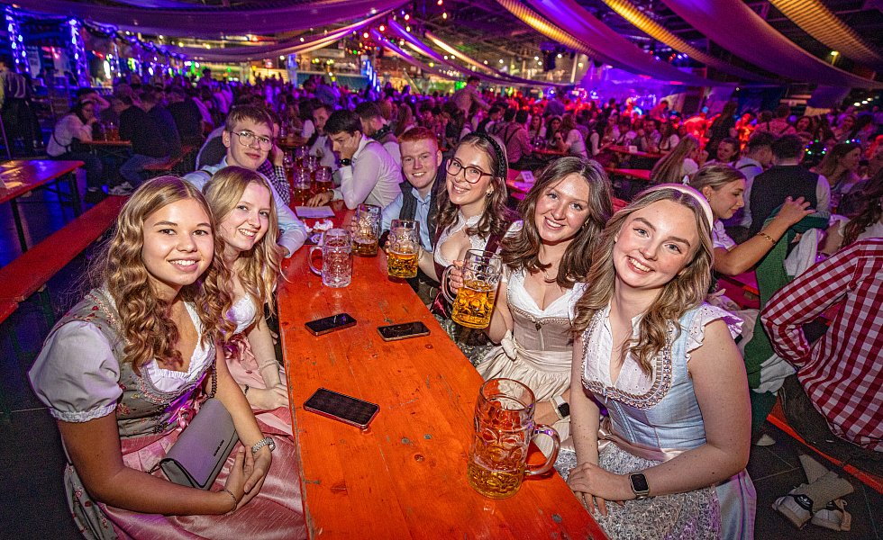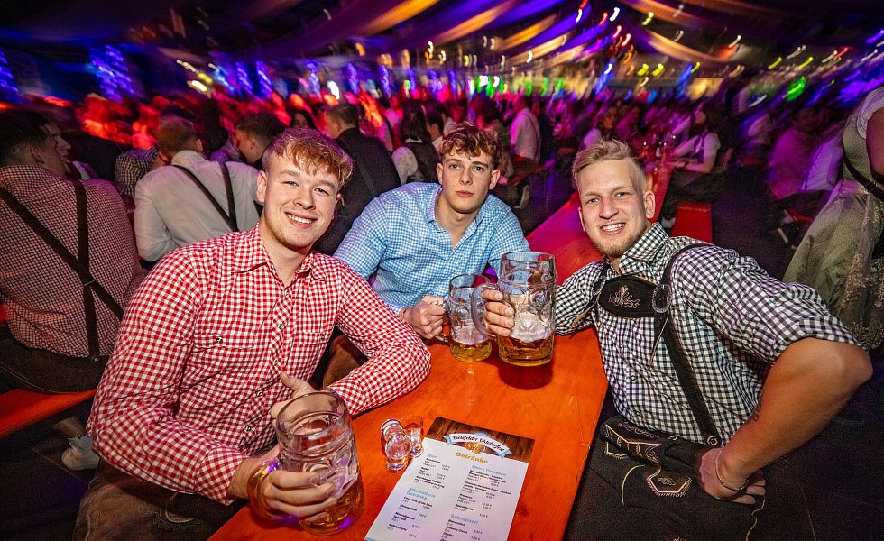 Mit Dirndl oder Lederhosen bekleidet freuen sich an diesem Wochenende wieder tausende Besucher über die zünftige Gaudi in der Bielefelder Seidenstickerhalle.