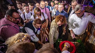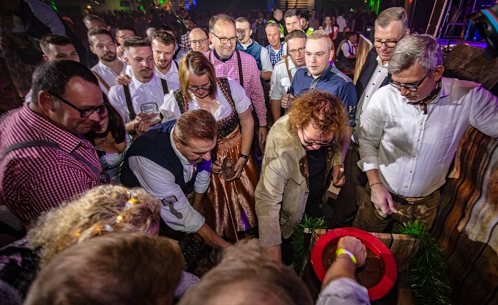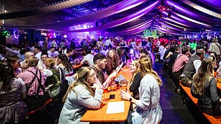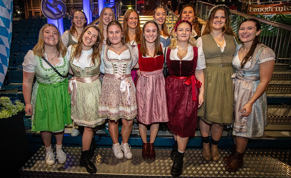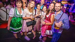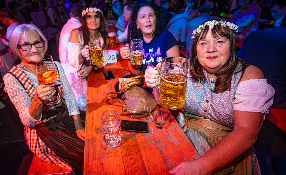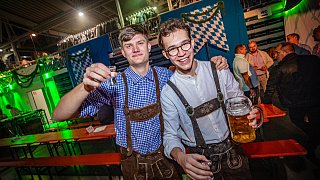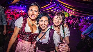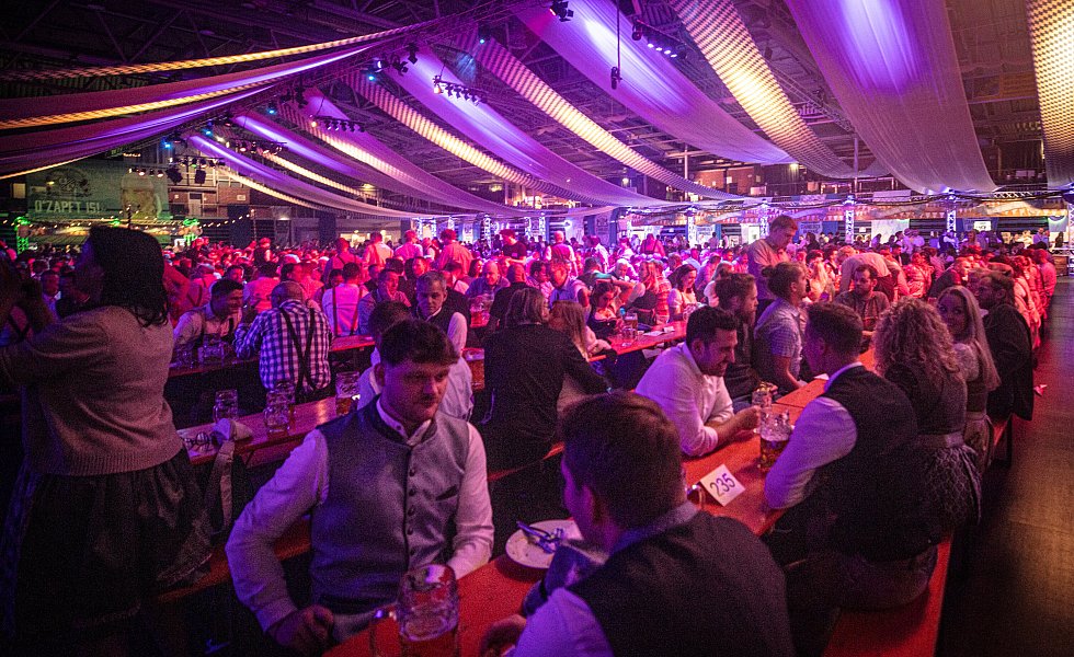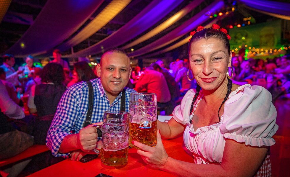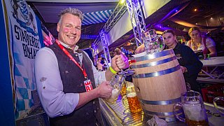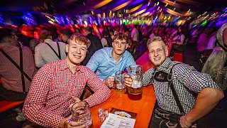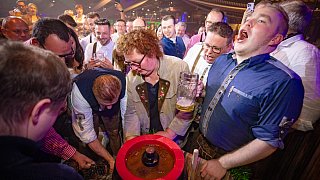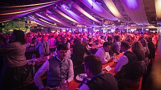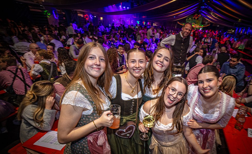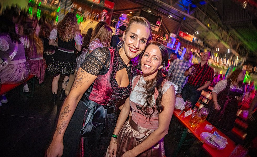 Mit Dirndl oder Lederhosen bekleidet freuen sich an diesem Wochenende wieder tausende Besucher über die zünftige Gaudi in der Bielefelder Seidenstickerhalle.