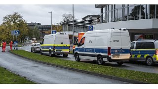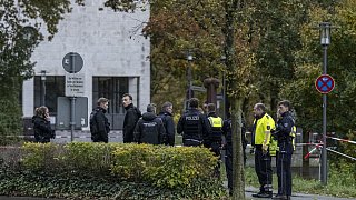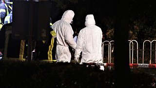 Die Spurensicherung inspiziert den Ort, an dem Polizisten einem Mann mit einer Handgranate ins Bein geschossen haben.