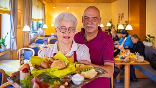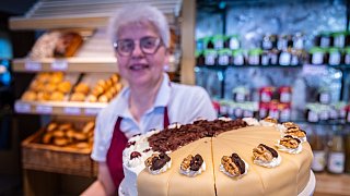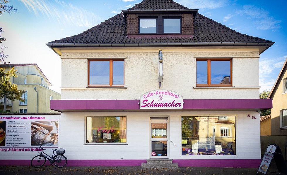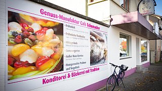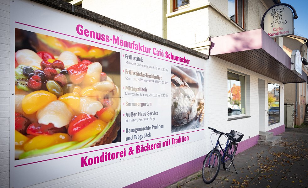 Die Bäckerei-Konditorei an der Oldentruper Straße hat eine lange Tradition - und ein modernes "Outfit" in kräftigen Pinktönen.