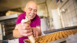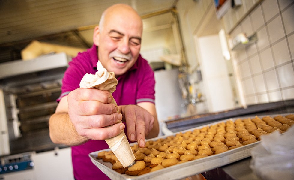 Konditormeister Torsten Schade kreiert in der Backstube zur Zeit auch Weihnachtliches - wie hier feines Printenkonfekt.
